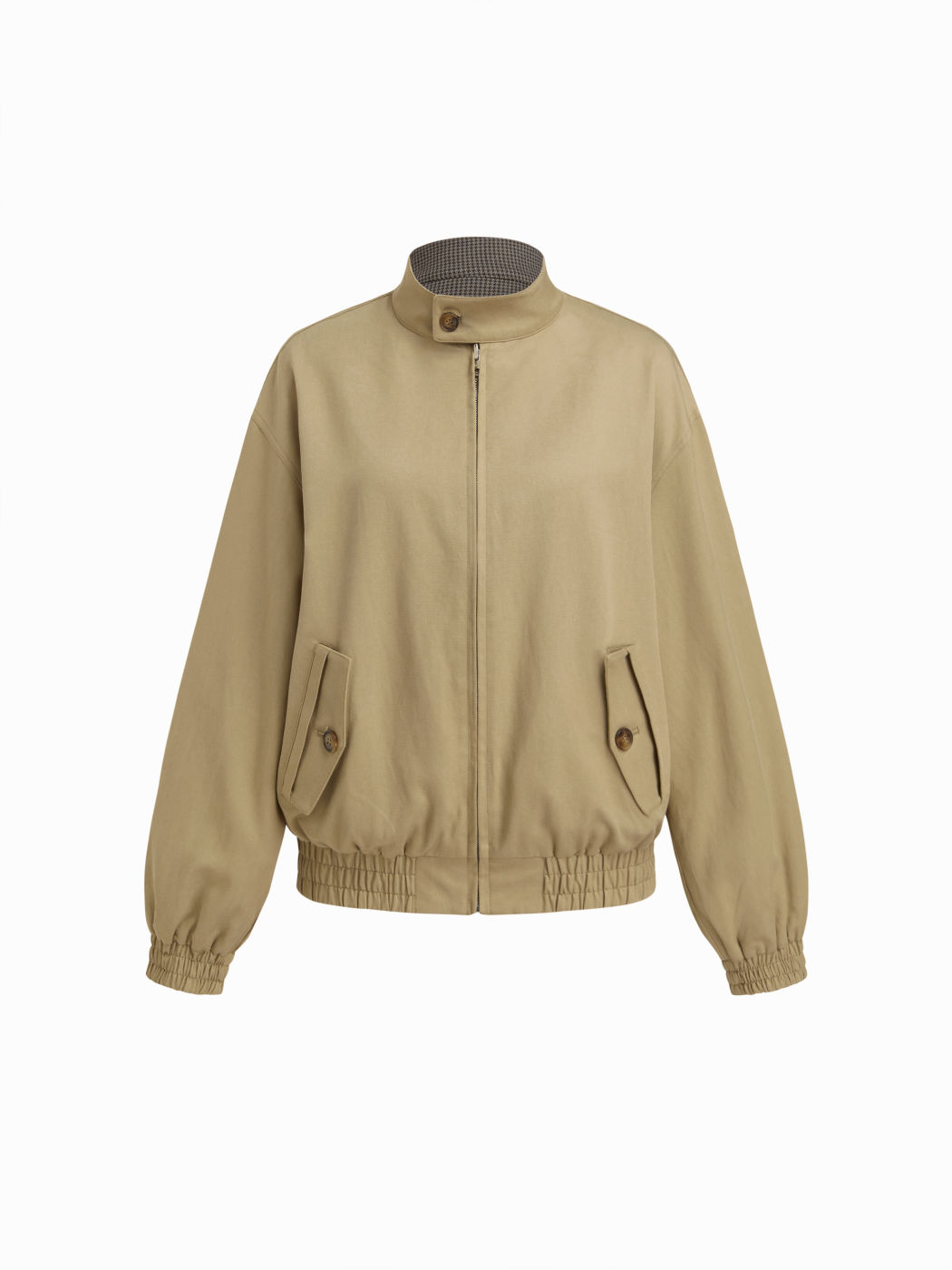 REVERSIBLE STAND COLLAR HOUNDSTOOTH OVERSIZED BOMBER JACKET