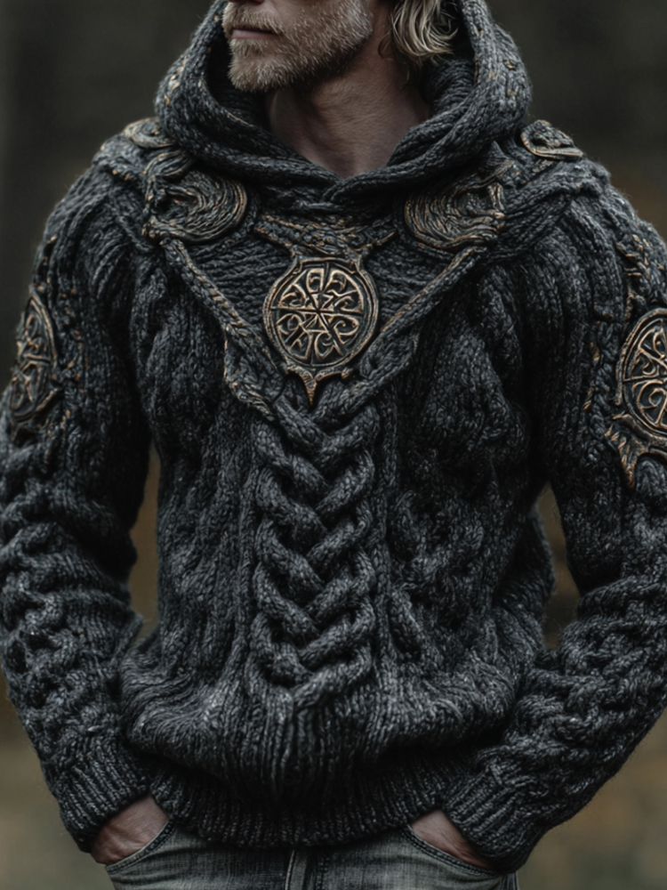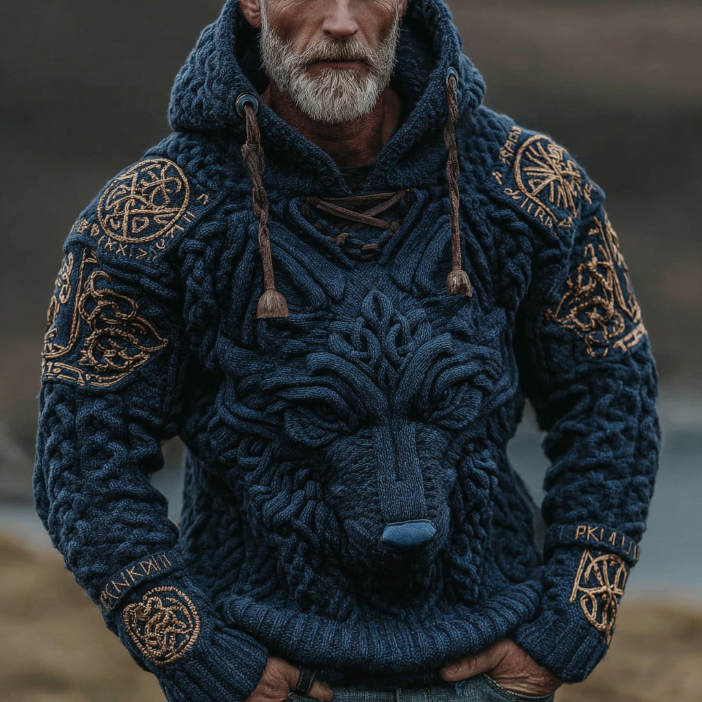 Viking Wolf Rune Chunky Knit Jacquard Hoodie