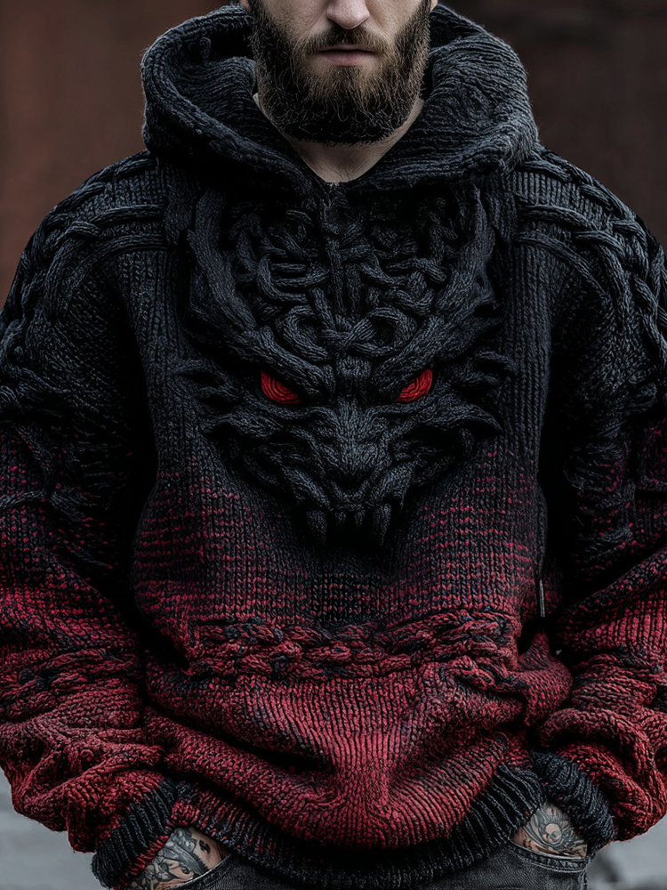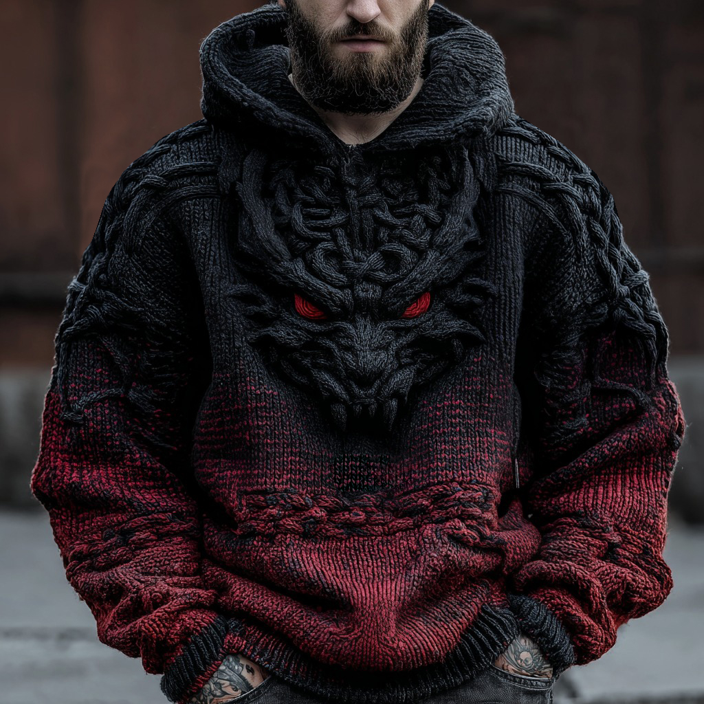 Viking Dragon Gradient Jacquard Art Knitted Hoodie