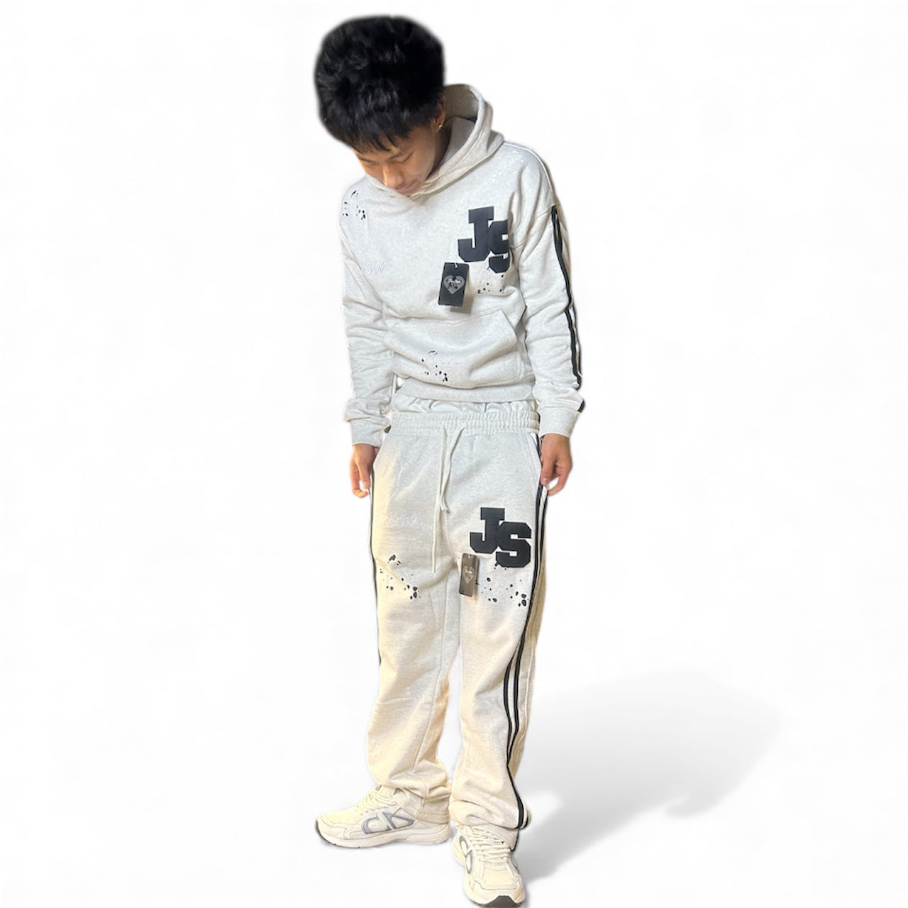 Features: Satin labels, hand distressing