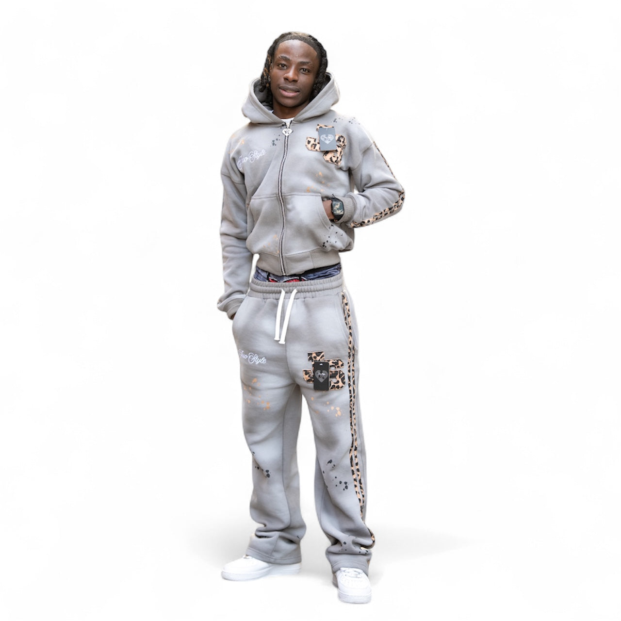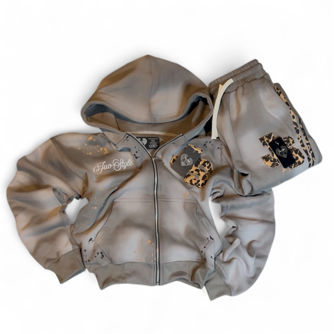 Features: Satin labels, hand distressing