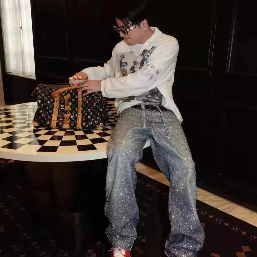Upgrade your wardrobe with the VYBES Rhinestone Pants, where bold streetwear meets celestial elegance. Designed for those who love to stand out, these baggy-fit jeans ensure you sparkle with every step while staying effortlessly comfortable.
