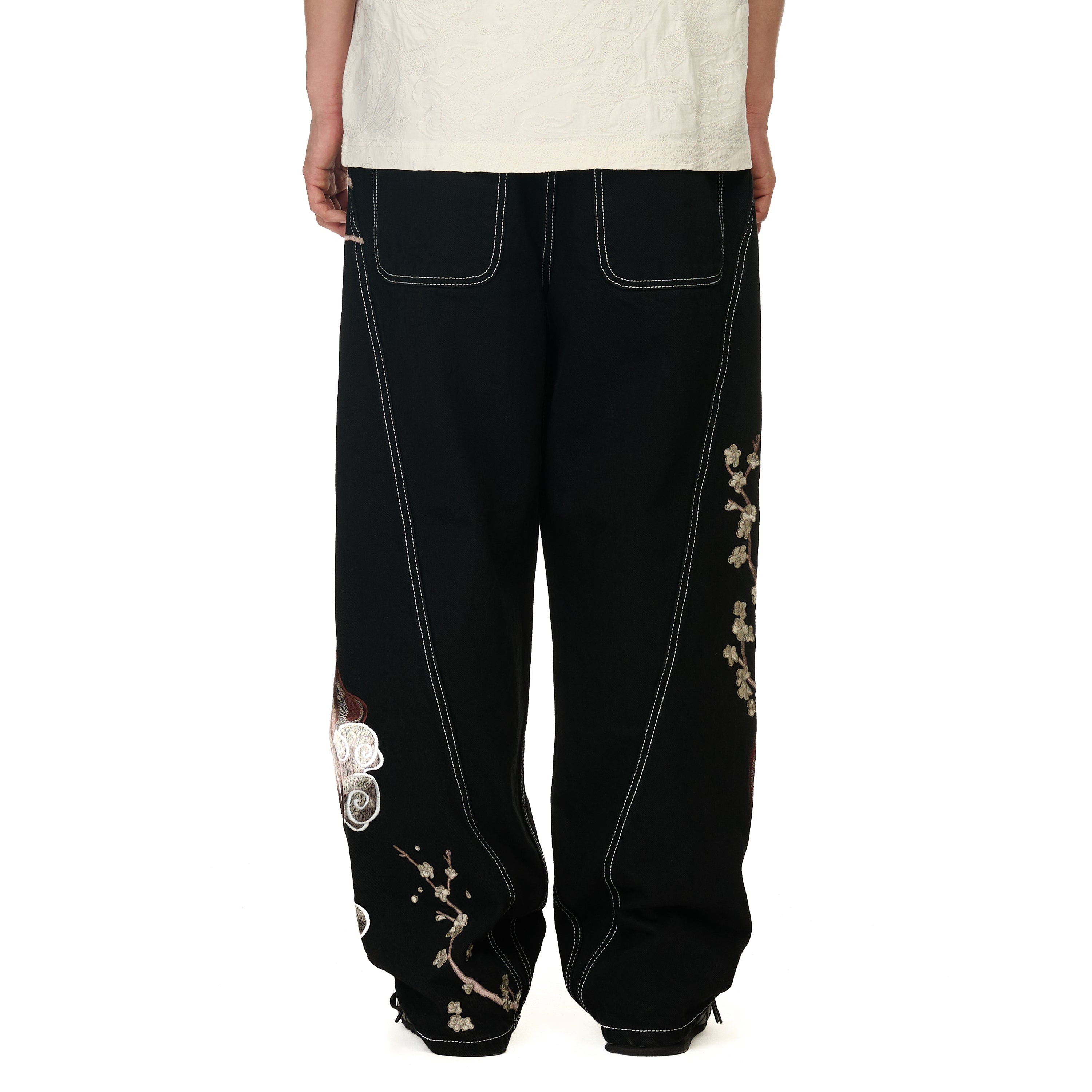 14oz denim / 100% cotton / seams on back / embroidery on front and back / embroidered leather patch / custom button / wash inside out / fits true to size